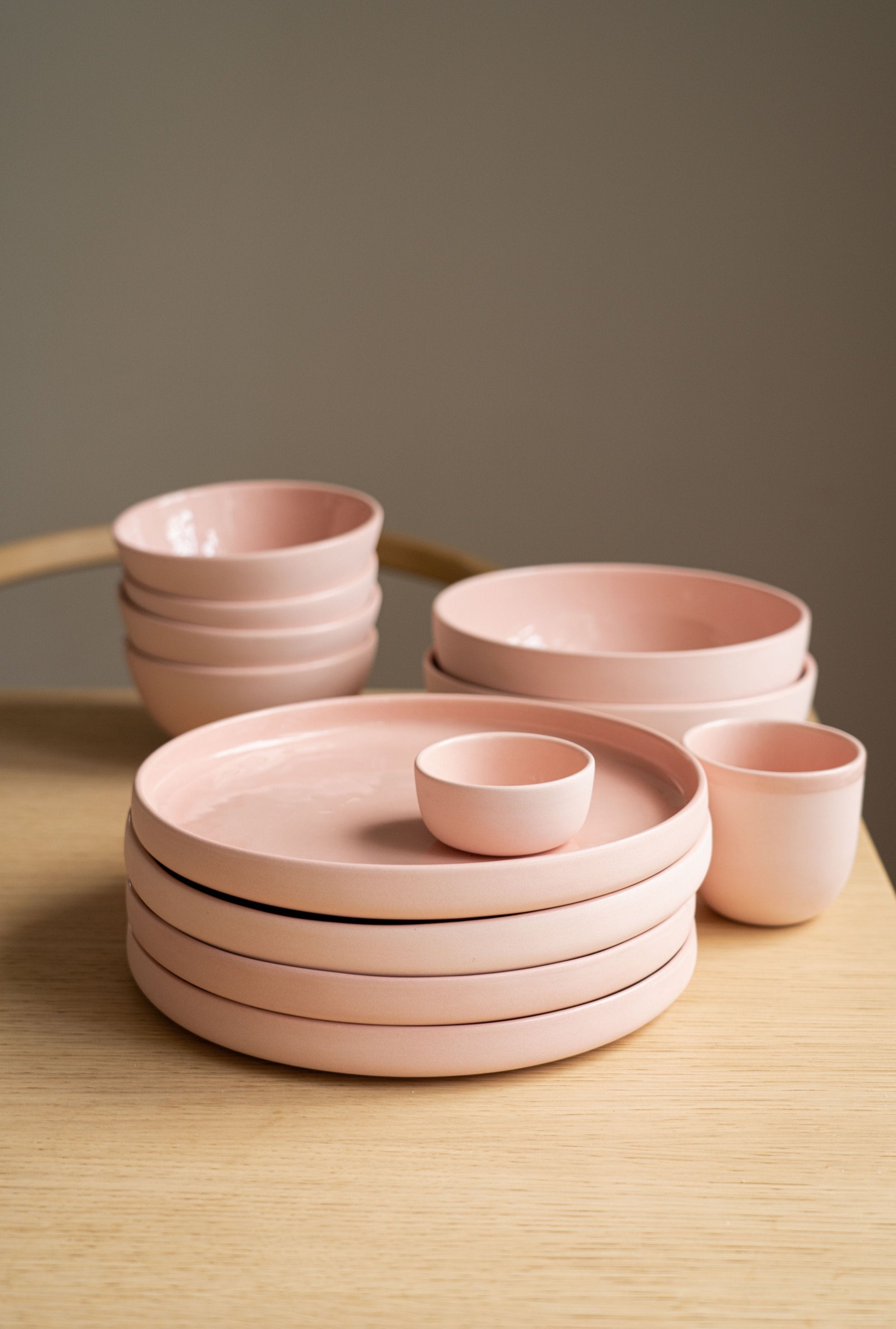 This high-sided dinner plate is made to create a perfect table setting for your meal, a comfy nest for your food, and a great art piece for your cabinets. The plate is glazed shiny neutral inside and smoothly polished on the outside.